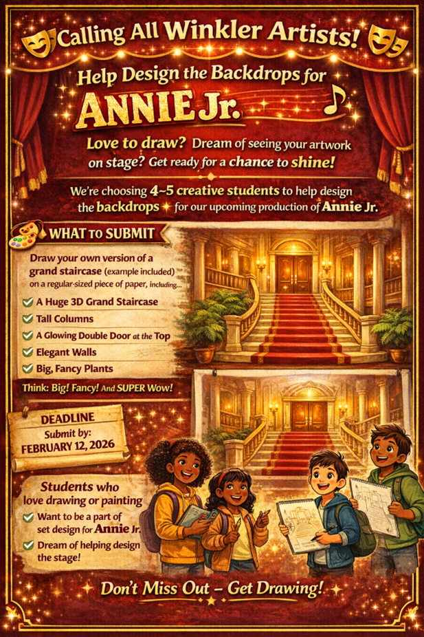 Do you love to draw or paint? Dream of seeing your artwork come to life on stage? This is your chance to shine!We are selecting 4–5 creative students to help design the stage backdrops for our upco...
