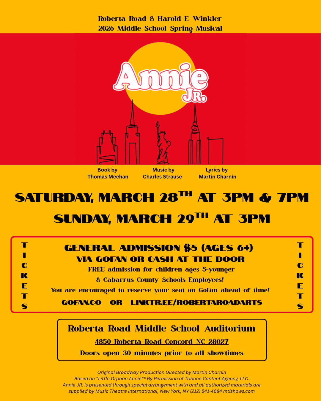 Join us for the 2026 Middle School Spring Musical: Annie Jr.! 🌟📅 Showtimes:🗓 Saturday, March 28 at 3 PM & 7 PM🗓 Sunday, March 29 at 3 PM📍 Roberta Road Middle School Auditorium🎟 Tickets:• $5 Gen...